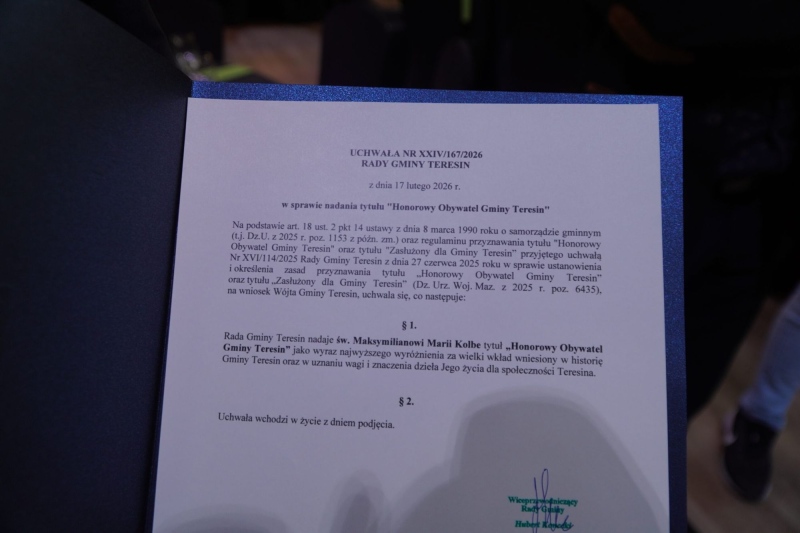 Źródło https://www.teresin.pl/sw-maksymilian-kolbe-honorowym-obywatelem-gminy-teresin/